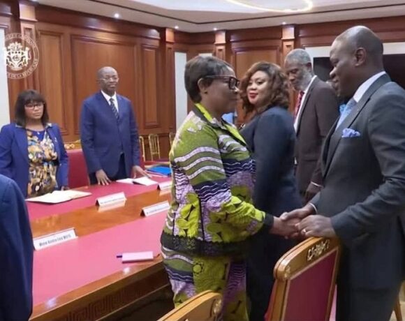 « Le Général Brice Clotaire Oligui Nguema, Président de la Transition, Président de la République, Chef de l’Etat s’est entretenu ce jour au Palais Rénovation avec SE Madame Pamela Joanne Mcphail, Haut-Commissaire du Royaume-Uni, de Grande Bretagne et d’Irlande du Nord près la République Gabonaise.